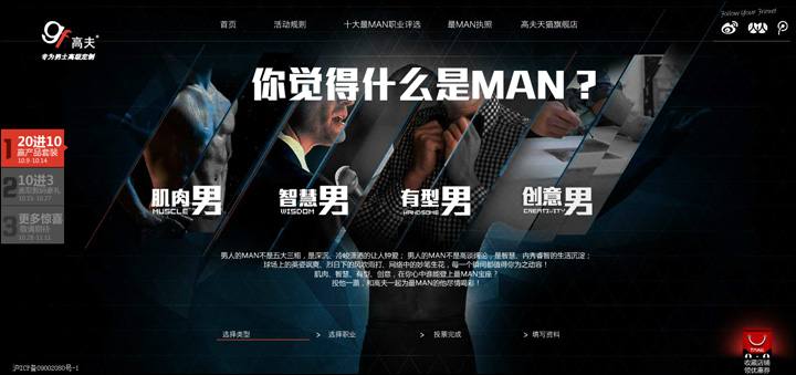 市场上唯一“专为男士高级定制”的个人护理品牌——高夫,在网络打造“最MAN十大男性职业”事件,吸引消费者关注并积极参与到活动中,在网络掀起最MAN职业的话题和热潮。